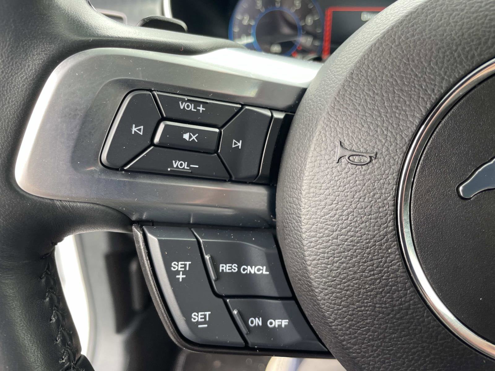 Vinyl Door Trim Insert, Urethane Gear Shifter Material, Trunk Rear Cargo Access, Trip Computer, Transmission: TREMEC 6-Speed Manual -inc: rev matching, Transmission w/Oil Cooler, Tires: 255/40R19 Fr & 275/40R19 Rr Summer -inc: Designed to optimize driving dynamics and provide superior performance on wet and dry roads, High performance summer tires wear faster than non-performance tires, Ford does not recommend using summer tires when temperatures drop to approximately 45 deg F (7 deg C) or below or in snow/ice conditions, Tire Specific Low Tire Pressure Warning, Tire Mobility Kit, SYNC 3 Communications & Entertainment System -inc: enhanced voice recognition, 8" LCD capacitive touch screen in center stack w/swipe capability, AppLink, 911 Assist, Apple CarPlay and Android Auto compatibility and 2 smart charging USB ports.